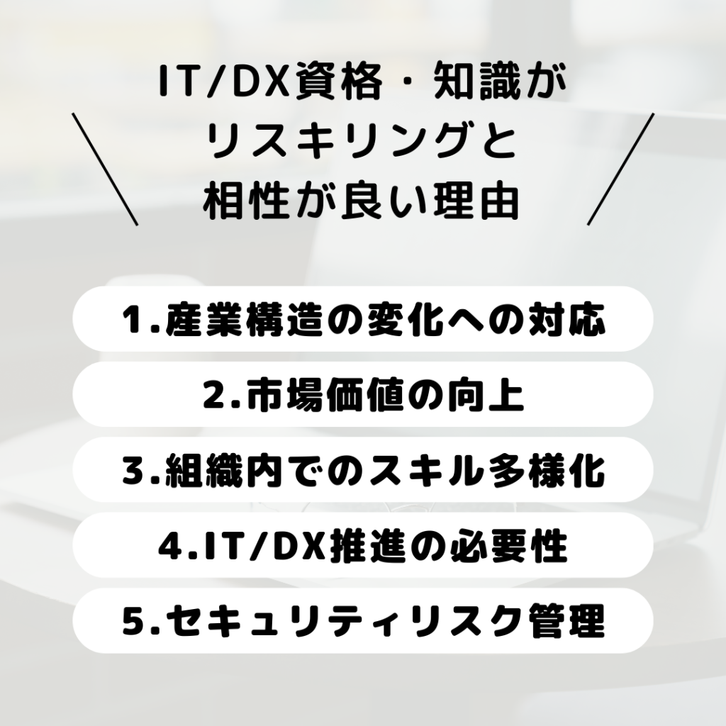 IT/DX資格・知識はリスキリングとは非常に相性が良い分野です。
